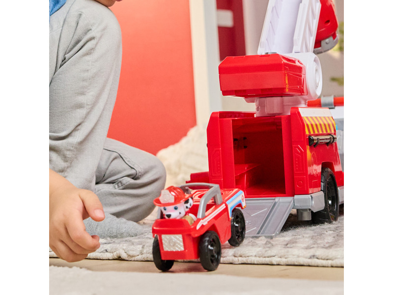 Indulj akcióba a Mancs Őrjárat – Fire Rescue – Tűzoltóautóval, amely impozáns, 50 cm-es méretével minden gyerekszoba középpontja lesz! Ez a különleges jármű világít, zenél, és számos izgalmas funkcióval várja a kis hősöket. A tetején található mozgatható létra segítségével a gyerekek elérhetik a magasabb pontokat, a kilőhető műanyag „vízsugarak” pedig még valóságosabbá teszik a tűzoltó kalandot. A vízsugarak az autó tetejéről újra felszedhetők, így a játék folyamatos és izgalmas marad.