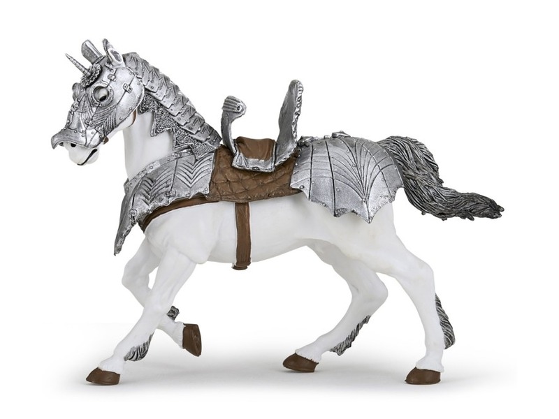 Hófehér paripa, ezüstszínű páncéllal felszerelve! A Papo felvértezett ló 39799 egy műanyagból készült paripa, amire bármelyik Papo lovagot fel tudod ültetni. A ló kézzel van festve, és együtt használható bármelyik Papo játékfigurával, készlettel is. A Papo felvértezett ló 39799 méretei: 14 x 5 x 11 cm.
