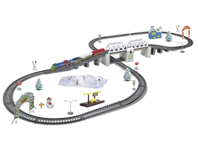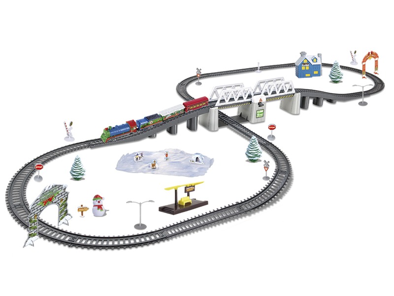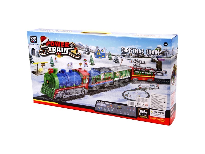 Szállítsd az utasokat vonattal, karácsony ünnepén is! A Power Train karácsonyi vonatkészlet rengeteg vasúti sínt, pályaelemeket, kiegészítőket és egy három kocsis, gőzmozdony által húzott vonatot is találsz. A pályát rengeteg módon tudod összerakni, a 42 darabos készlet 8-as formában, több kereszteződéssel is összeépíthető. Használd a váltókat, építs hidat, és kerüld meg a korcsolyázókat is a vonattal! A mozdony 2 darab AAA mikro ceruzaelemmel működik, a csomagolás az elemeket nem tartalmazza. A Power Train karácsonyi vonatkészlet összeépíthető más Power Train készletekkel, játékokkal és sínekkel is. A pálya hossza: 366 cm. Csomagolás méretei: 61 x 8 x 32 cm.