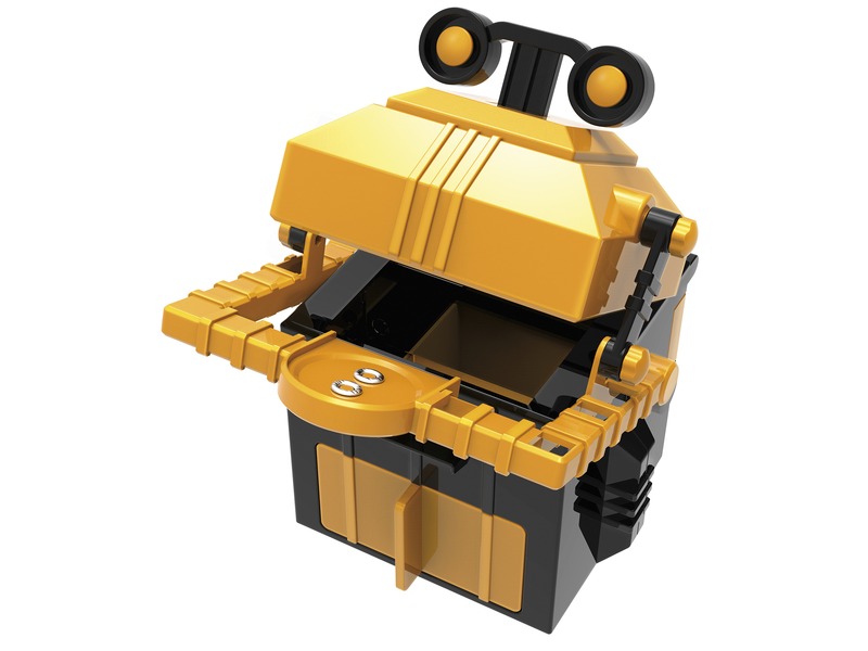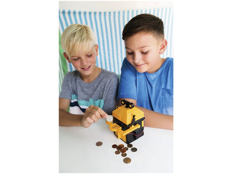 Engedd, hogy saját robotod őrizze vagyonodat! Ezzel a KidzRobotix robotpersellyel megtapasztalhatod, hogyan is működik az elektronikus játékok felépítése. Tedd az érmédet a robot szája elé és engedd, hogy „megegye”, így biztos jó kezekben lesz féltve őrzött kincsed. Ha pedig elő szeretnéd venni a perselyedből az érméidet, a robotból kihúzható fiókban megtalálod őket. Igazi élményben lehet részed a játék összeszerelése közben. A pontos leírás segítségedre lesz abban, hogy könnyedén össze tudd rakni új elektronikus barátodat. Hagyd, hogy ez a kedves robot és őrizze az érméidet! Nagy móka lesz végignézni, ahogy az elektronikus fej folyamatosan nyeli el apródat. Játssz bankosat barátaid társaságában, akik biztosan ámulni fognak új, magától mozgó robotodon. A készlet tartalmazza a robot összes elemét, amit csak össze kell állítani, a vállalkozó szellemű építőnek. A játék önálló mozgatásához 2 db AAA mikroelem szükséges, melyet a készlet nem tartalmaz.