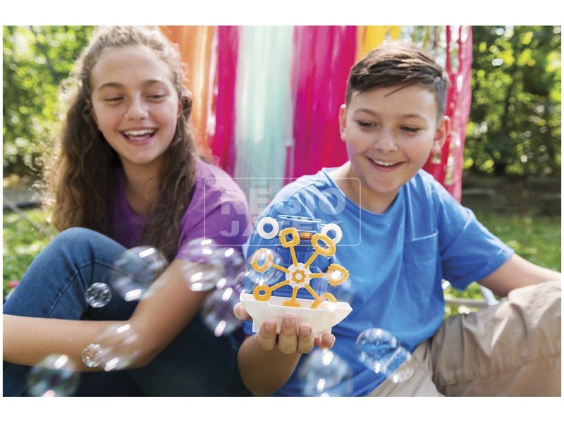 Rajzolj az égre a buborékfújó robottal! Ennek a mókás szappanbuborék gyártó készletnek a segítségével varázslatos élményben lehet részed. A hétfejű buborékfújó lehetővé teszi, hogy különböző formájú buborékokat készíts. Kör, háromszög, csillag, az összes kedves forma, melyet aztán a levegőben, akár képzeleted által össze is párosíthatsz. A mókás robot azonnal elkészíti Neked a buborékokat, csak töltsd a kis táljába a készlethez tartozó folyadékot. A fújókákat ki is szedheted a játékból és magad is elkészítheted kedvenc formáidat. Nincs is nagyobb szórakozás, mint a repülő buborékok között táncolni és futkározni. A készlettel lélegzetelállító és varázslatos pillanatokat élhetsz át, akár barátaid társaságában is. A készlethez tartozik 7 db fújófej, a robot összeállítható teste és a buborékfújó folyadék. A játék 2 db AAA mikroelemmel működik, melyet a készlet nem tartalmaz. A robot összeállításához egy csillag csavarhúzó szükséges. A játék mérete kb. 11,5 cm magas.