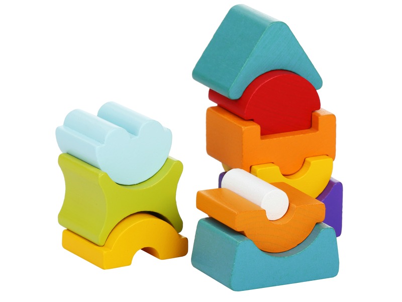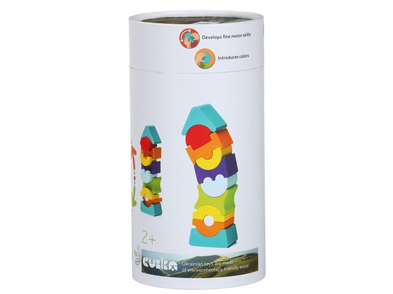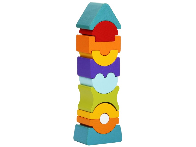 Építs fel fa építőkockákból egy imbolygó tornyot! A Hajlékony torony fa építőjáték egy színes, változatos formájú kockákból összerakható torony, amit egyensúlyban kell tartani. A torony építését a hengeres építőelemek teszik izgalmassá, az építés türelmet, koncentrációt és kézügyességet igényel, ezeket a tulajdonságokat a játék fejleszti is! A Hajlékony torony fa építőjáték 11 darab fa építőelemet tartalmaz. Méretek: 7 x 5 x 23 cm.