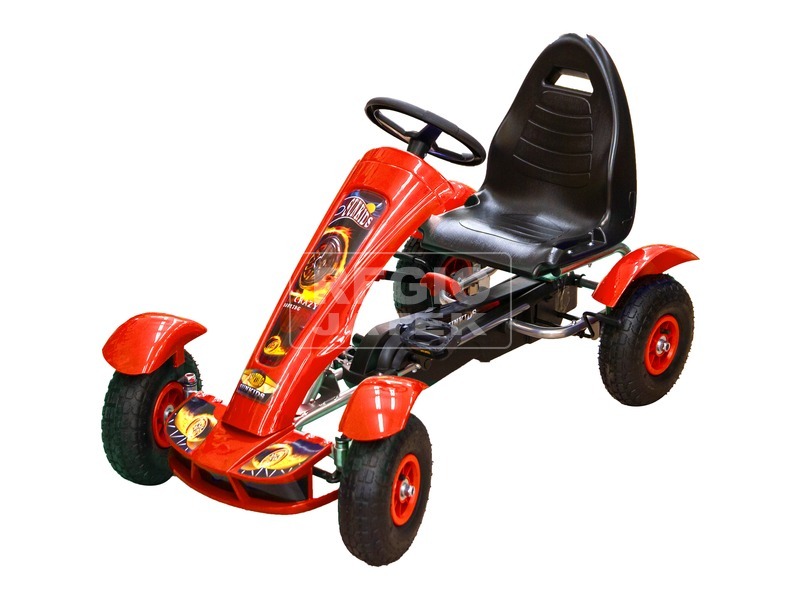 Tűzpiros gokart, amivel a parkban tudsz versenyezni! piros Pedálos gokart egy fém vázzal, műanyag üléssel és kormánykerékkel, műanyag kerekekkel készült stabil négykerekű járgány, amivel a parkban száguldozhatsz. A gokart láncos hajtással készült, az ülés távolsága állítható, a pedálokkal miközben hajtod a gokartot, erősödnek a lábaid. A kék gokart egy kézifékkel is fel van szerelve, amivel pillanatok alatt meg tudsz állni. A piros Pedálos gokart méretei: 95 x 61 x 58 cm. Maximális terhelhetőség: 50 kg. A gokart kerekei fújhatóak.