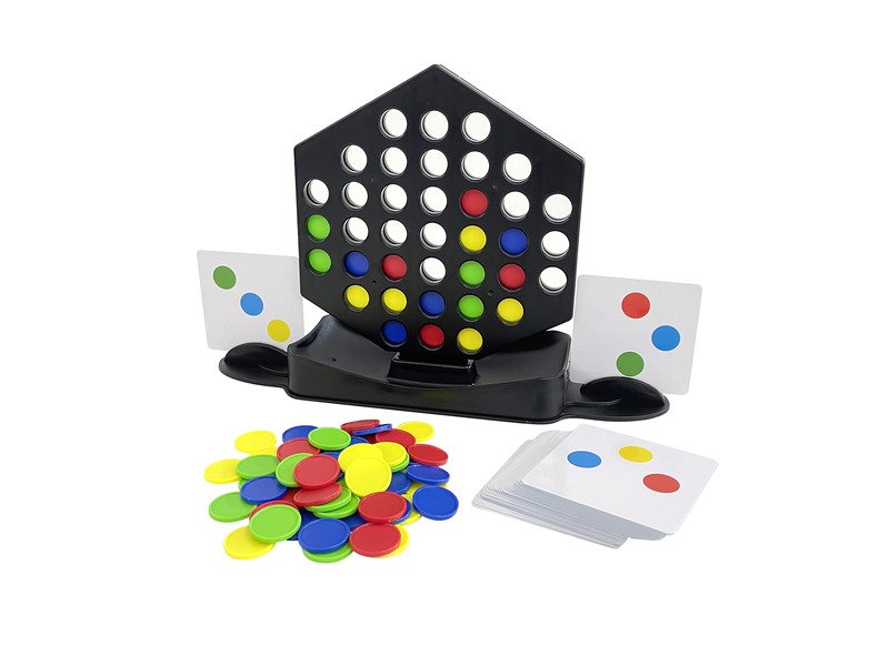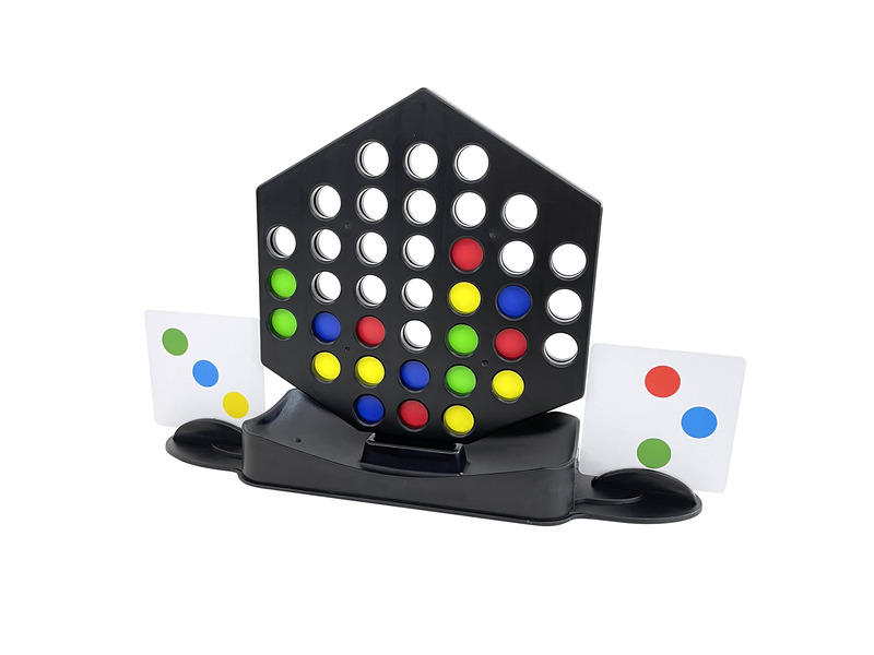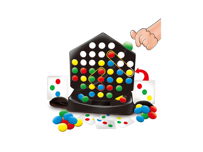 Hogyan játsszuk? A játékosok felteszik a korongokat a játéktáblára. Ha az egyik fél kirakja a lapon lévő mintát, akkor megtarthatja a kártyát. Ha a tábla megtelik a korongokkal és egyik játékos sem tudta kirakni a mintát, akkor újra kell kezdeniük a játékot. Fordítsátok meg a táblát, hogy a korongok kicsússzanak és új játékot tudjatok kezdeni! Gyűjts össze 5 kártyát a játék megnyeréséhez!