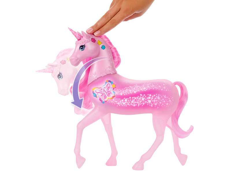 A hosszú, hullámos sörény és farok fésülhető és díszíthető, így a játék még izgalmasabbá válik. Ez az unikornis tökéletes társ a szerepjátékhoz és a fantáziadús történetekhez, hiszen Barbie unikornisával minden nap egy tündérmese válik valóra. A csillogó fények és varázslatos hangok fokozzák a játékélményt, míg a gombnyomásra aktiválható effektek még inkább életre keltik a varázslatos kalandokat.