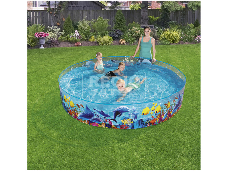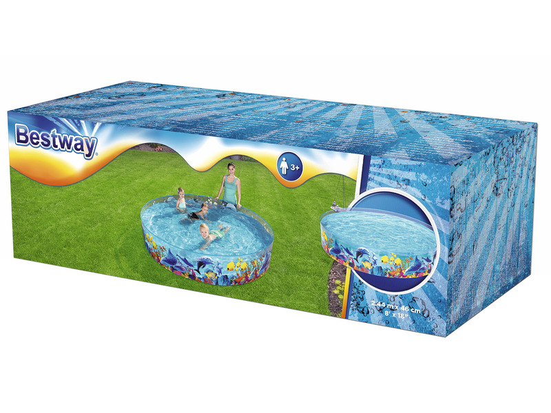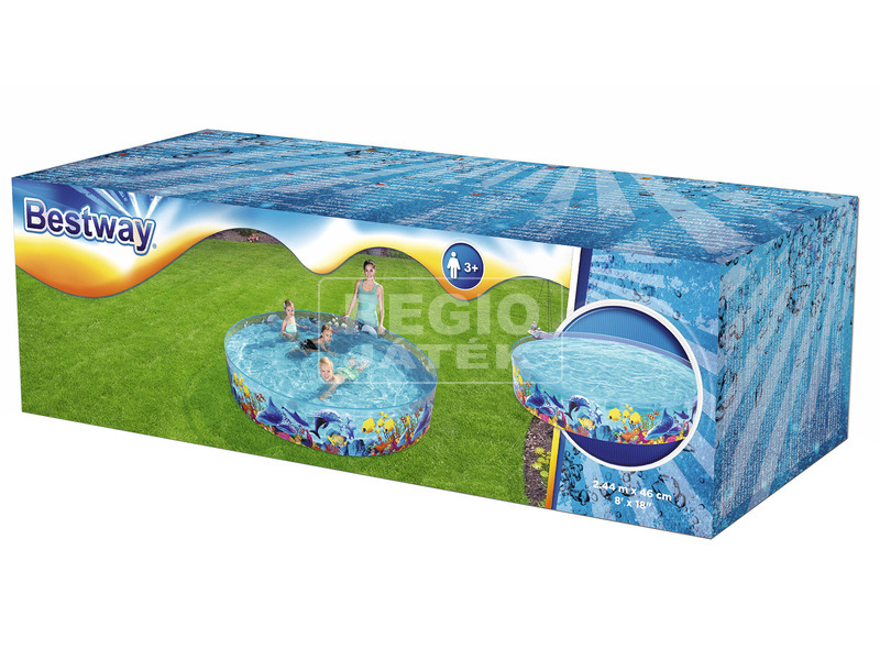 Csobbanj úgy, mintha a tengerben lennél! A Merevfalú, tenger élővilága mintájú medencében most valódi felfrissülésre lelhetsz. A medence oldalán a színes halakon át, a kedves delfinekig mindenkit megtalálsz. Állítsd össze közösen családoddal ezt a vidám medencét, majd töltsétek meg vízzel és kezdődhet is a nagy lubickolás! A medence merev falának köszönhetően stabilan áll, így nem kell attól tartani, hogy a medencéből kilépve a víz kifolyik. Kör alakú formája és közel 3 méter szélessége miatt, akár még hárman is elférhettek a hűsítő vízben. Merülj el az élvezetekben, majd csodáld meg a medence oldalán lévő állatokat, akik úgy néznek ki, mintha veled együtt úszkálnának. A játék tartalmazza a merev falú tengeri állat mintás medencét és a részletes leírást. A medence mérete 2,44 m x 46 cm, így a benne lévő pancsolást 3 éves kortól ajánljuk.