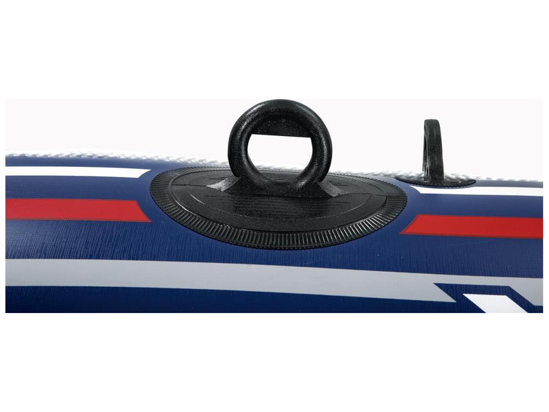 3 légkamra, erős markolat, körbefutó fogantyú, beépített kötélgyűrűk, felfújható padló a nagyobb kényelemért, és kényelmes, felfújható üléspárnák csábítanak a csónak megvásárlására. Mérete felfújva: 307 x 126 x 39 cm Mérete leeresztve: 318 x 152 cm Maximális létszám: 3 felnőtt + 1 gyerek Maximális terhelhetőség: 270 kg 1 pár 124 cm-es lapát GS-tanúsítvány (TÜV Rheinland) Tartós anyagból készült PVC Jellemzők: Húzógyűrű Beépített evezőzárak és bilincsek Gyorskioldó szelepek Biztonsági szelepek