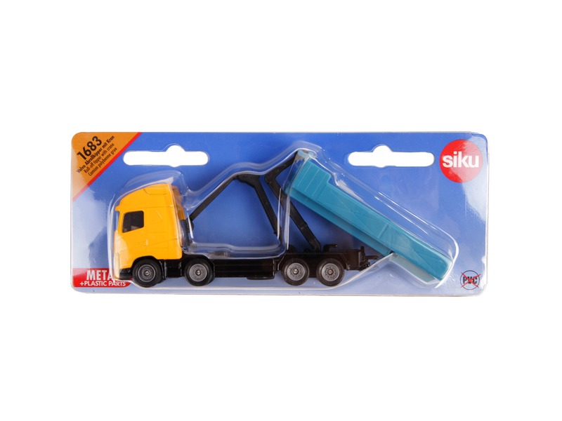 Szállíts rakományt az emelhető platós teherautóval! Az 1:87 méretarányú Siku: Volvo dömper daruval - 1683 egy fémből és műanyagból készült teherautó, ami nehéz tömegeket is képes könnyedén magával vinni. A teherautó platóját meg tudod dönteni, a daruval a rakományt fel tudod tölteni a szállítási felületre. A játék együtt használható más 1:87 méretaránnyal készült SIKU játékokkal, készletekkel is. A Siku: Volvo dömper daruval 1:87 - 1683 mérete: 12 cm.