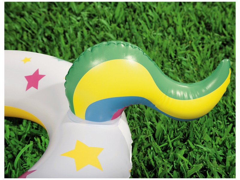 Kapaszkodj az úszógumiba, ha elfáradtál a medencében! Az Állatos úszógumi egy erős PVC-ből készült úszókarika, unikornis, bálna vagy papagáj mintával. Az úszógumit biztonsági szelepen át lehet könnyen felfújni, és segít fent maradni a víz felszínén. Válaszd ki a papagájt, az egyszarvút vagy a bálnát, és pancsolj sokat a legforróbb napokon is! Az Állatos úszógumi felfújt méretei: 79 x 58 cm. A játékok külön kaphatóak.