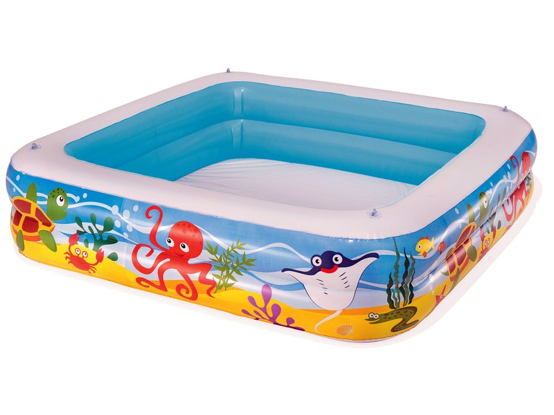 Kisebb felfújható medence, amiben akár három gyerek is játszhat! A Bébimedence árnyékolóval egy felfújható, erős PVC-ből készült kicsi medence, ami a legkisebbeknek hoz lehűlést a forró napokon. A medencét biztonsági szelepeken keresztül lehet felfújni, az árnyékoló megvédi a gyerekeket a káros UV-sugárzástól. A készlet egy öntapadós javító foltot is tartalmaz. A Bébimedence árnyékolóval méretei: 140 x 140 x 114 cm.