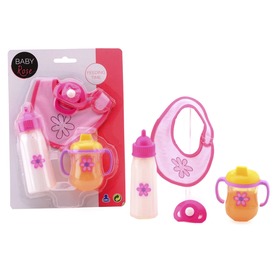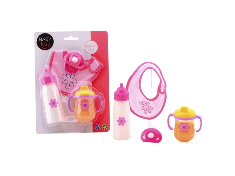 Etesd meg a babát különféle cumisüvegekből! A Játékbaba etető 4 darabos készlet egy üveges cumit, egy duplafülű cumit, egy játszó cumit és egy előkét tartalmaz, amikkel el tudod venni kedvenc játékbabád éhségét. A cumik műanyagból készültek, az előkét könnyen rá tudod adni a babára, hogy megóvd a lecsepegő ételdaraboktól. A Játékbaba etető 4 darabos készlet bármilyen játékbabával együtt használható. Csomagolás méretei: 16 x 23 x 5 cm.