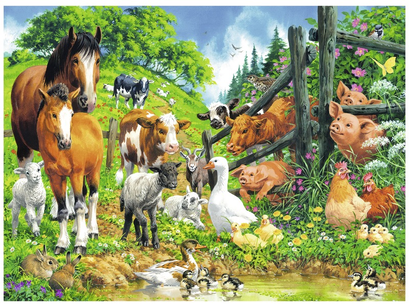 A karám kerítésénél sütkérező háziállatok, kirakós változatban! Az Állati buli 100 darabos XXL puzzle vidám lovakat, bocikat, malacokat és egyéb állatkákat ábrázol. A kirakós precízen illeszthető mozaikdarabokból készült, élénk színekkel. Az Állati buli 100 darabos XXL puzzle kirakott méretei: 59 x 36 cm.