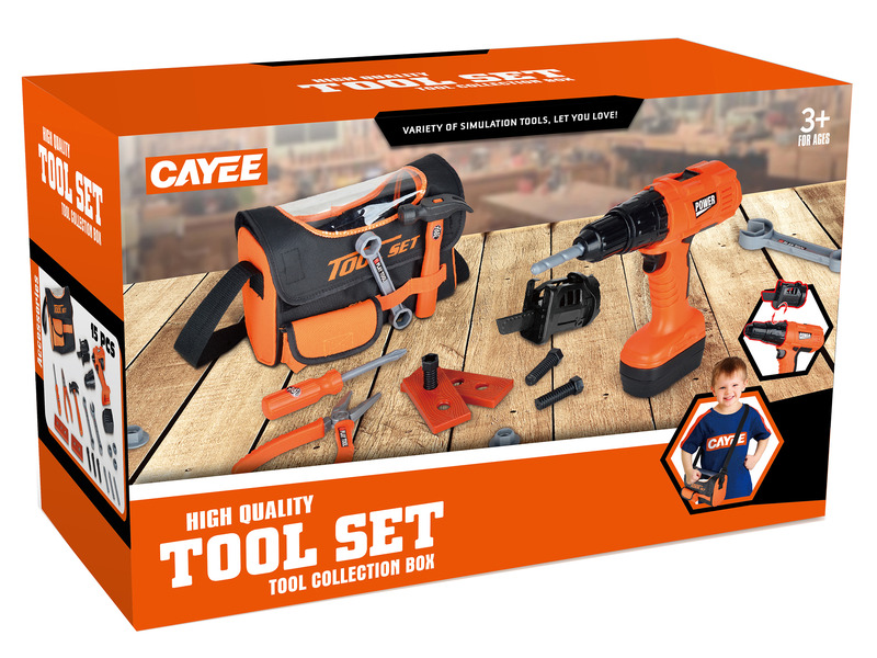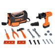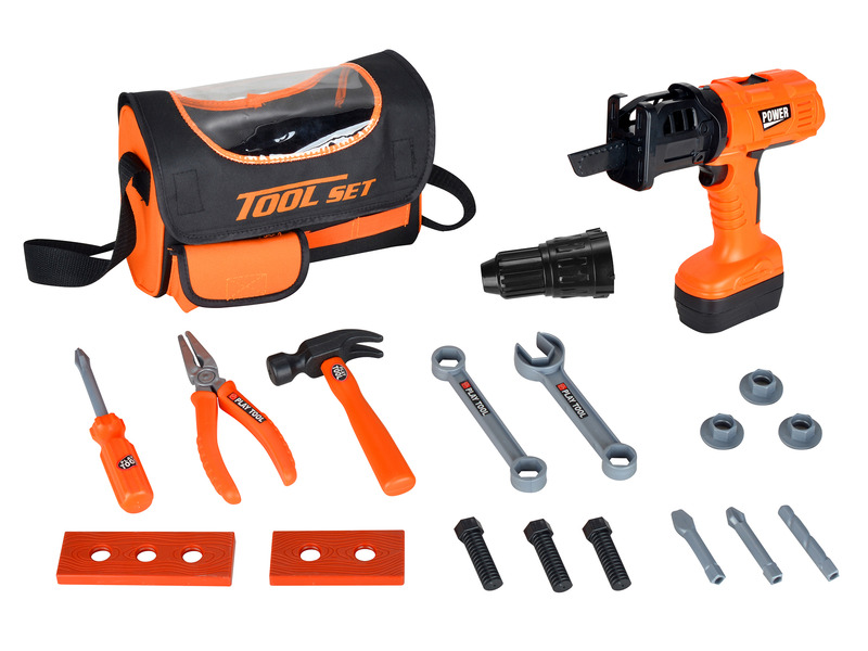 Ebben a barkácskészletben ott van minden, amire csak szükség lehet, ha valamit meg kell javítani vagy össze kell szerelni: 1 csavarhúzó, 1 kalapács, 2 csavarkulcs, 1 fogó, és a legfontosabb, 1 elemes játék fúrógép. Ehhez jönnek még kiegészítők, különböző fúróhegyek, csavarok, stb és hogy a rendszerezéssel és a szállítással se legyen gond, egy vagány táska, amibe minden elfér. Minden olyan, mint az apáé vagy a szerelő bácsié, csak épp biztonságos és csak a gyerekeké.