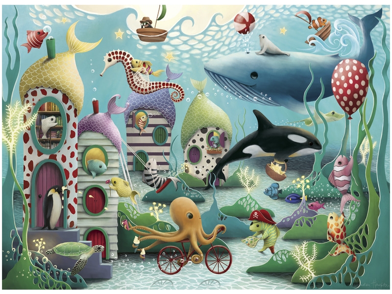 A szokatlan és kortárs dizájn a hullámok alatti élet tündérmeséjét hozza létre. A tengerfenék olyan utcává vált, ahol aranyos kis házakban halak élnek, egy polip biciklizik, egy kardszárnyú bálna viszi haza a bevásárlókosarat, és még számos érdekes részlet válik láthatóvá, amint minden darab a helyére kerül.