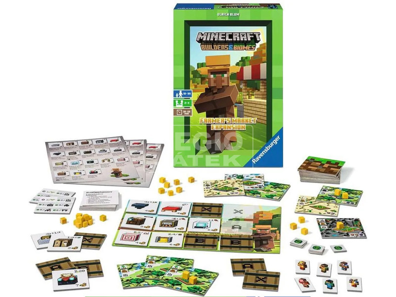 Egy bővítmény a Minecraft: Builder & Biomes társasjátékhoz, hogy még több offline Minecraft kalandban lehessen részetek, a zöldségtermeléssel és - eladás-sal! Csak az alap Minecraft társasjátékkal együtt használható, amit szintén meg-találtok a regiojatek.hu-n. A Ravensburger anyagi formát adott minden idők legnépszerűbb videójátéká-nak, a Minecraftnak, hogy a képernyőn kívül is folytatódhasson az építés, a takti-kázás és a harc. Ez a játékbővítmény egy újabb lehetőséget hozott a győzelemre: a zöldségtermelést! Ideális ajándék a Minecraft játékok rajongóinak. Egyben remek lehetőség arra, hogy akár a család azon tagjai is részesei legyenek a Minecraft élménynek, akiket nem vonz a videójátékok világa. Éppen ezért remek családi társasjáték lehet.