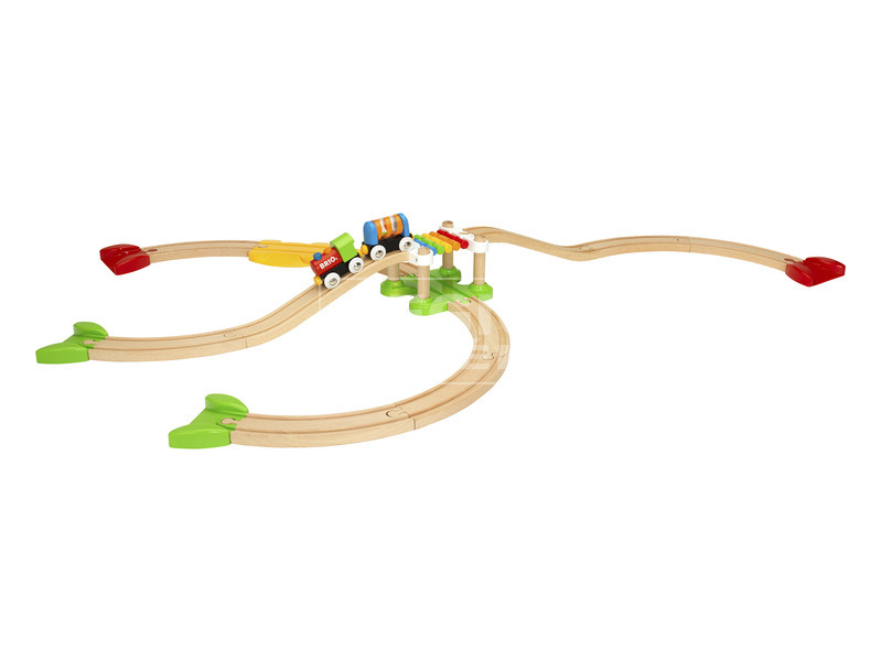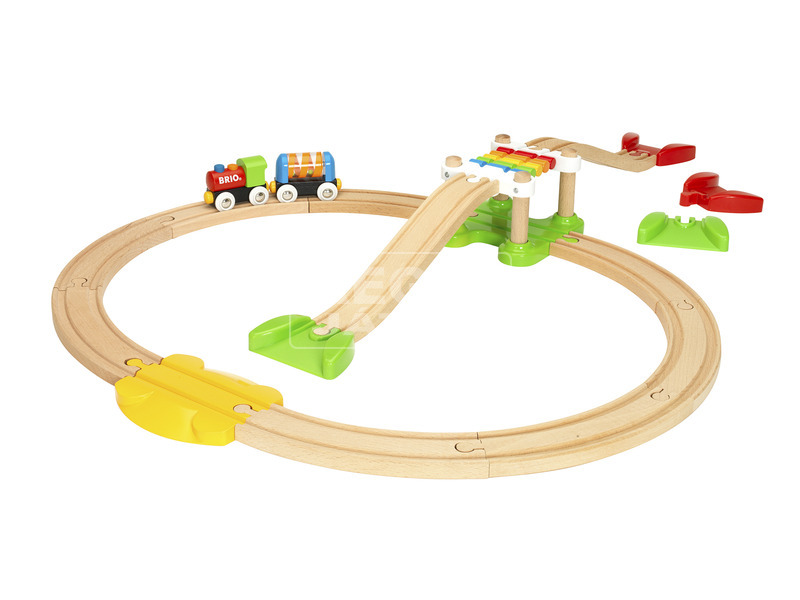 Építsd meg saját vonatpályádat! A BRIO Az első vonatszettem kezdő készlet könnyedén vezeti be a gyermekeket a fa építőjáték világába. A vasútvonal 10 fa és 7 darab műanyag elemből áll, így kacskaringós vonalak végtelen sorát fogod tudni megalkotni vasútjaid számára! Csodáld meg az összekapcsolható vonatokat, melyek különböző színű felfestéssel rendelkeznek. A két vagont a rajtuk található mágnesnek köszönhetően tudod összekapcsolni, így sosem kell tartanod attól, hogy szeretett szerelvényeid elválnának egymástól a nagy utazások során. A könnyen összeszerelhető sínek és a színpompás kialakítás mind segítségükre lesz a gyermekeknek fejlődésükben, miközben kreatív ötleteikkel fantasztikus játékélményben részesülhetnek. A BRIO Az első vonatszettem kezdő készlet tartalmazza a 17 darab sínt és a vonatot. A játékot 3 éves kortól ajánljuk.