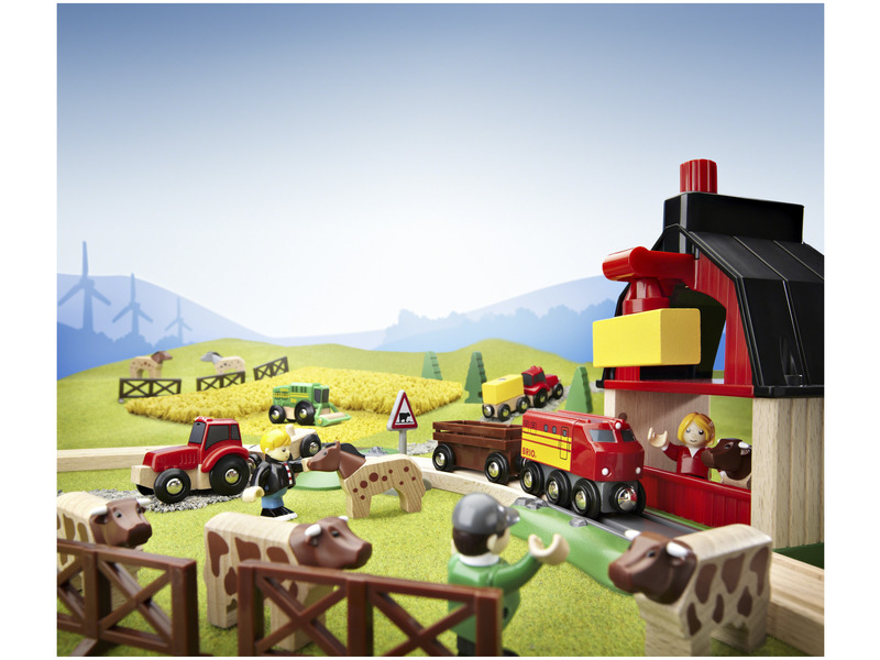 Egy farmon mindig zajlik az élet, hiszen az állatok körül nagyon sok a tennivaló! Ennek a szuper farmos játék szettnek a segítségével te is igazi gazda lehetsz, és nem is akármilyen! A gazdaságodon egy igazi vasút is keresztül megy, amely segítségedre lesz az állataid szállításában. A különleges vasúti megálló és a hozzá tartozó épület segítségével a kis szállító kocsidat is ráteheted a teherszállító vagonokra. Az állatokat pedig egy speciálisan kiképzett vasúti kocsiba tudod felterelni, melynek oldalán nyitható ajtó és lépcső is található. A vasúti síneken a zökkenőmentes átjárást kiépített átkelők biztosítják, itt menj át a traktoroddal, amikor mész a vasútállomásra, hogy feltegyed a tehenedet a következő szállítmányra! A szuper fa játék készlettel elképesztően jól szórakozhattok, szervezzétek meg a gazdaság életét, a vonatok érkezését és indulását, szárnyaljon a fantáziátok és a kreativitásotok!