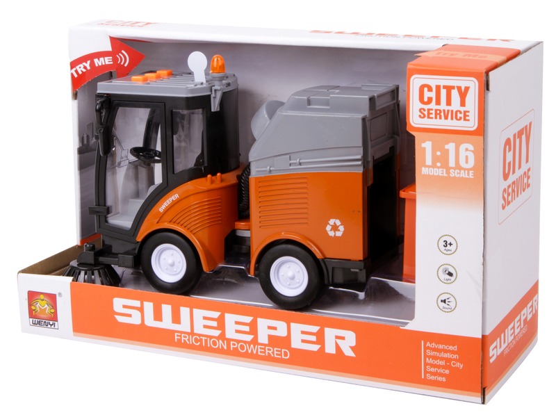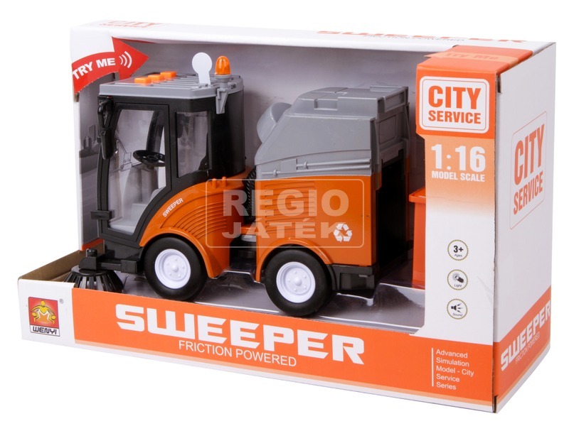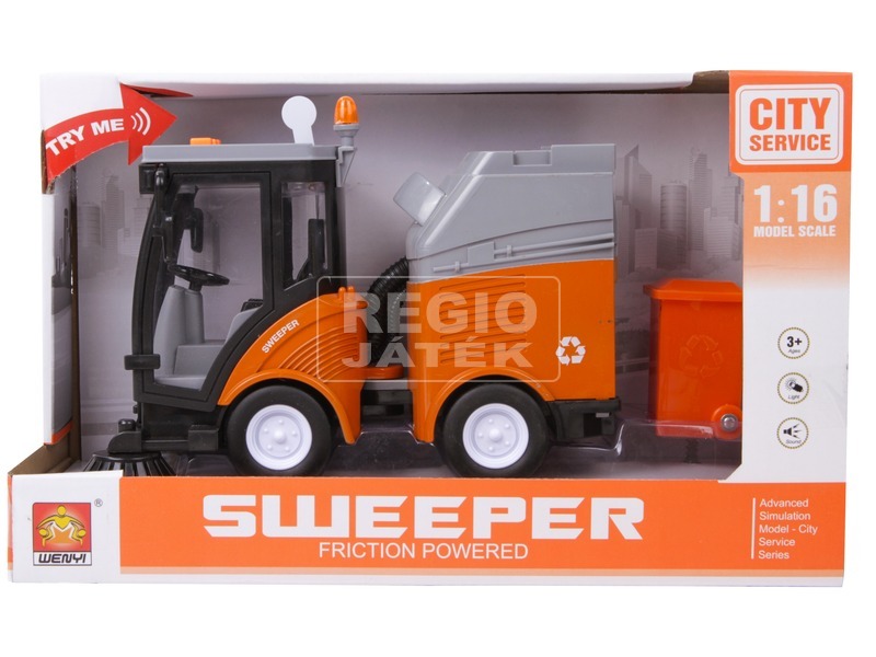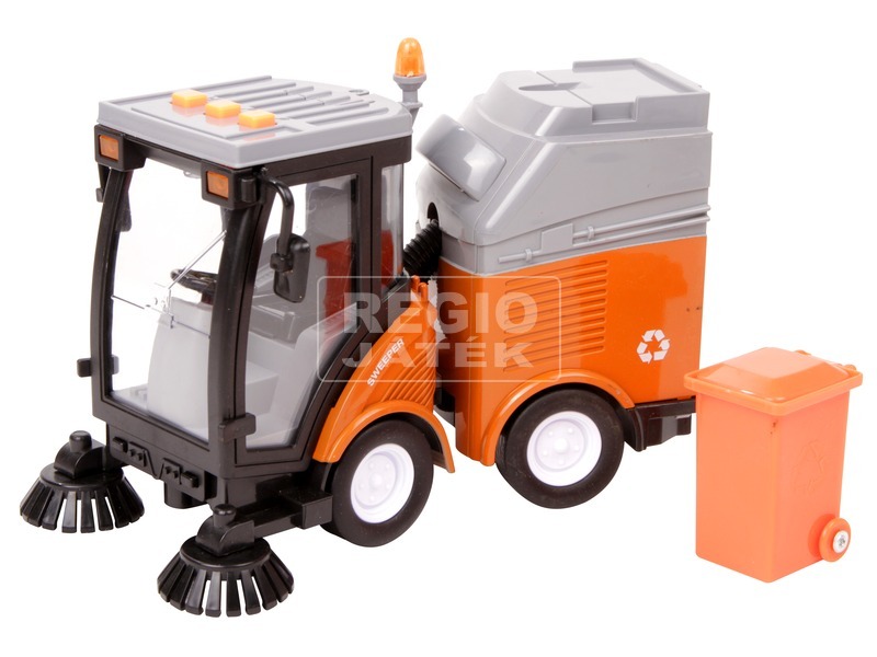 Tartsd rendben városod utcáit! Az Útseprő autóra szerelt seprűs forgó fejével, és a hozzá tartozó kukájával végre könnyedén feltakaríthatod az eldobott csikkektől és szemetektől csúfított közterületeket. Könnyítsd hát meg a városgondnokság munkáját, és szerezd be nekik ezt a modern, narancssárga járművet! Használd a figyelmeztető hang- és fényjelzéseket, hogy a feladatodat baleset okozása nélkül végezhesd el! Az Útseprő autó működéséről 3 darab AG13 típusú gombelem gondoskodik (tartozék). Az úttisztító kocsi méretei: 21 x 13 x 11 cm, míg a kuka méretei: 6 x 3 x 4 cm. A játékot 3 éves kortól ajánljuk.