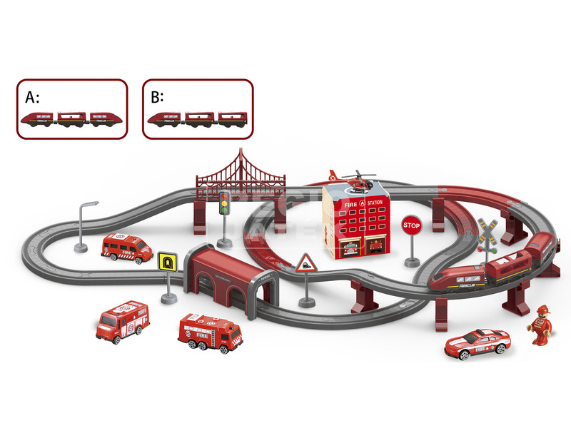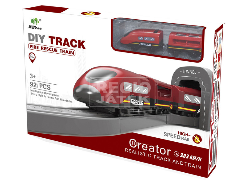 Fedezz fel távoli tájakat ezzel a 92 darabos vonatpálya szettel. A vasúti kocsik praktikusan mágnessel kapcsolódnak egymáshoz. A mozdony tetejét lecsavarozva tudunk elemet tenni a játékba, így a mozdony képes húzni a vonatkocsikat. A mozdony működéséhez 2 x AAA elem szükséges. Az elemeket a csomagolás nem tartalmazza. Anyaga: műanyag, fém. Az apró és fulladásveszélyt okozó alkatrészek miatt a használatát csak 3 éves kortól, és szülői felügyelet mellet ajánljuk.