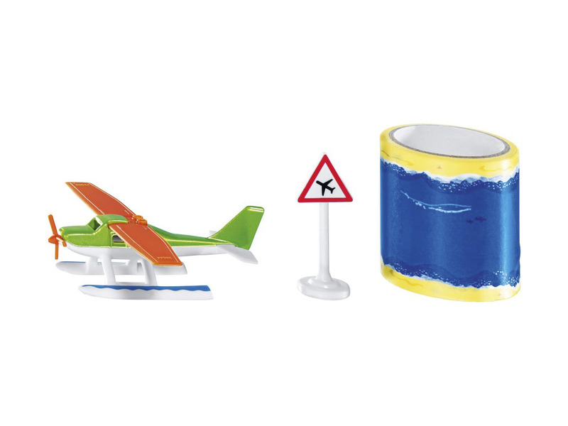 Siku márkájú hidroplán, vizet utánzó szalaggal. A víz a fel- és leszállás kifutópályája. A hidroplánok lenyűgöző módon egyesítik a víz és a levegő elemeit. A hidroplán nem egy kifutón száll fel és landol, hanem folyókon és tavakon. Általában járhatatlan terepen használják expedíciókhoz, valamint kutató-mentő repülésekhez. A pilóta sok tapasztalatot és bátorságot igényel. Tekerje ki a szalagot, és induljon a kaland! Az öt méter hosszú szalag sima felületekre és rövid szálú szőnyegekre tapad.