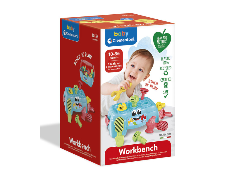 Szuper elfoglaltság lesz a kisfiúk számára ez a szerszámos asztalka. A munkaasztal kalapáccsal, csavarhúzóval és csavarkulccsal érkezik, amely élénk színeinek köszönhetően biztosan felkelti majd a kicsik figyelmét. Csavarok, szögek is találhatóak a dobozban, amelyek az asztalba becsavarhatóak. A játék biztonságos műanyagból készült. A ládán egy fogantyú is helyet kapott, így gyermeked bárhová magával viheti ezt a remek játékot. Segít a szem-kéz koordináció fejlesztésében. A játék újrahasznosított anyagokból készült!