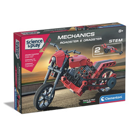 A készlet több mint 90 alkatrészt tartalmaz 2 különböző, erőátviteli mechanizmussal felszerelt modell megépítéséhez. Az illusztrált kézikönyv lépésről lépésre elmagyarázza a roadster motorkerékpár összeszerelését. Rengeteg különleges alkatrész, mint például a sebességváltó modul, fogaskerekek, összekötő rudak, dugattyúk és még sok más, lehetővé teszi a járművek működésének megfigyelését. A "Science & Play Build" alkalmazás integrálja a játékélményt azzal, hogy az interaktív 3D animációknak köszönhetően minden modellhez összeszerelési segítséget nyújt.