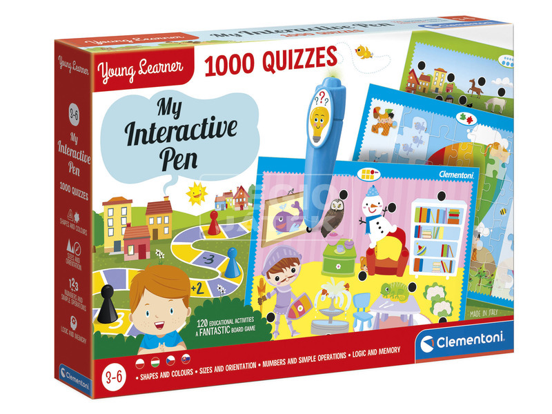 Az Interaktív Kvízjáték egy olyan gyerekek számára készült oktató készlet, ami 32 kártyával és 64 játéktevékenységgel tanítja játékosan gyermekedet. A feladvá-nyokkal a gyermekek a betűket, szavakat, számokat, mennyiségeket, formákat és színeket tudják gyakorolni és megtanulni. A játék több mint 1000 kvízkérdést tar-talmaz, amely lehetővé teszi a gyermekek számára, hogy kipróbálják magukat. A társasjátékot 2-4 játékos is játszhatja, így még inkább lebilincselő tanulást bizto-sít. A színes képek és látványos játéktábla, a hagyományos kártyajátéknál még szórakoztatóbbá és ösztönzőbbé teszi a játékot. A gyerekek önállóan tanulnak a válaszérzékelő tollnak köszönhetően, amely végigvezeti a gyerekeket a játék so-rán: minden helyes válasz megadásakor a toll megszólal és zölden világít!