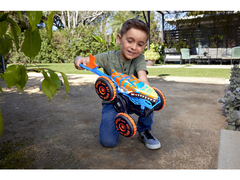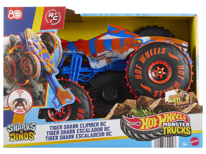 A Hot Wheels Monster Trucks távirányítós Mega Tiger Shark igazi szörnyeteg az autók között. A látványos, cápa ihlette dizájn és a masszív kerekek garantálják az izgalmas terepakciókat. A távirányítóval könnyedén irányítható, így a gyerekek különböző trükköket, ütközéseket és menő mozdulatokat is kipróbálhatnak vele. Strapabíró kialakítása miatt hosszú időn át bírja a megterhelést, akár beltéren, akár kültéren használják. Tökéletes ajándék minden Hot Wheels és Monster Trucks rajongónak, akik szeretik a látványos, akciódús játékokat.