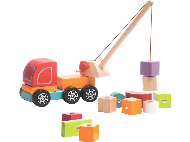 Rakosgasd a színes fa kockákat a daruskocsival! A Fa darus autó mágneses rakománnyal egy belül fémet tartalmazó, fa építőkockákkal készült emelős autó, forgó gémmel. A daruval építőkockákat tudsz felemelni és odébb tenni, a daruhoz mágnesességgel kapcsolódnak az építőkockák, amikből akár várat, kisebb tornyot is meg tudsz építeni. A játék fejleszti a műszaki érzéket, a kézügyességet, és már a kisebbeknek is megtanítja a színeket, a formákat. A Fa darus autó mágneses rakománnyal méretei: 29 x 9 x 10 cm.