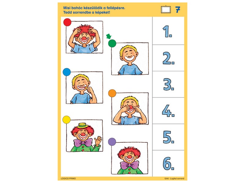 Tedd időrendbe, sorrendbe a feladatokon látható dolgokat! A Logico Primo Logikai sorrend 1246 egy fejlesztő feladatsor, ami az óvodásoknak készült. A kártyákon lévő feladványokkal a gyerekek fel tudnak állítani helyes sorrendeket, legyen szó időrendről, vagy méretekről, egyéb ismérvekről. A kártyákat Logico Primo keretbe kell tenni, a helyes megfejtéseket a hátoldalon találod. A Logico Primo Logikai sorrend 1246 oldalszáma: 32.