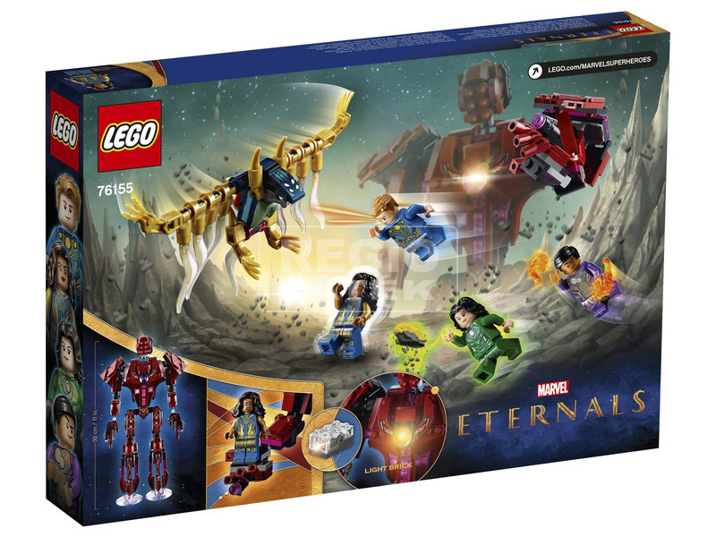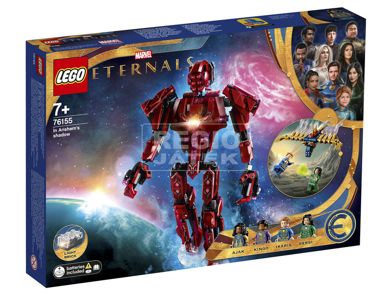 A LEGO® Marvel Az Örökkévalók Arishem árnyékában játékkészletben 4 gyűjthető szuperhős-minifigurát, egy gonosz Deviánst és egy mindenható Égit találsz, aminek világít a mellkasa, állítható, 2 tőrrel, 1 karddal, 2 mini kilövővel és egy pengével felszerelve. Játszd el a Marvel filmekből jól ismert akciókat, ebben a szettben 4 Örökkévaló, 1 Deviáns és 1 Égi csap össze egymással. Csatlakozz az Örökkévalók csapatához, hogy legyőzzétek a Deviánst. Használjátok a szuper képességeiteket, ami minden Örökkévalónak más és más. Ajak kommunikál az Égiekkel, Sersi bármilyen anyagot át tud alakítani, Ikarisnak emberfeletti ereje van, Kingo viszont földöntúli energiát tud felszabadítani magában. Nagyszerű lehetőség a szerepjátékokra, használd a fantáziád, és tölts minőségi időt barátaiddal, vagy a családdal. Exkluzív szett, hiszen ebben az egy készletben találod meg Ajak és Kingo minifiguráit, így igazán fontos gyűjtői darab lehet.