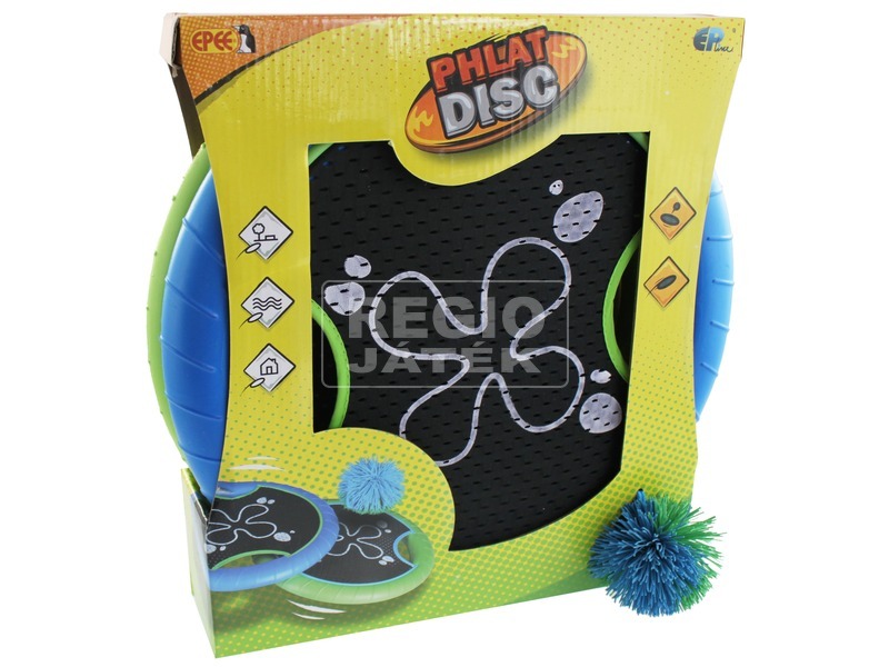 Üssétek egymásnak a labdát, vagy játsszatok frizbit! A Phlat Disc ügyességi játék 2 koronggal egy 2 az 1-ben sportjáték, amit a szabadban tudtok játszani. A korongot egy ütőként lehet használni, amivel a szőrmók labdát tudjátok egymásnak passzolni. A korongok frizbiként is használhatók, mivel a Phlat Disc könnyű szerkezetű, és jól tud repülni. A Phlat Disc ügyességi játék 2 koronggal játékot érdemes a parkba, vagy akár a strandra is elvinni, játsszatok vele teniszt, vagy kapjátok el a repülő korongot! A készlet 2 darab korongot, valamint egy szőrmók labdát tartalmaz. A korong átmérője: 30 cm, a labda átmérője: 8 cm.