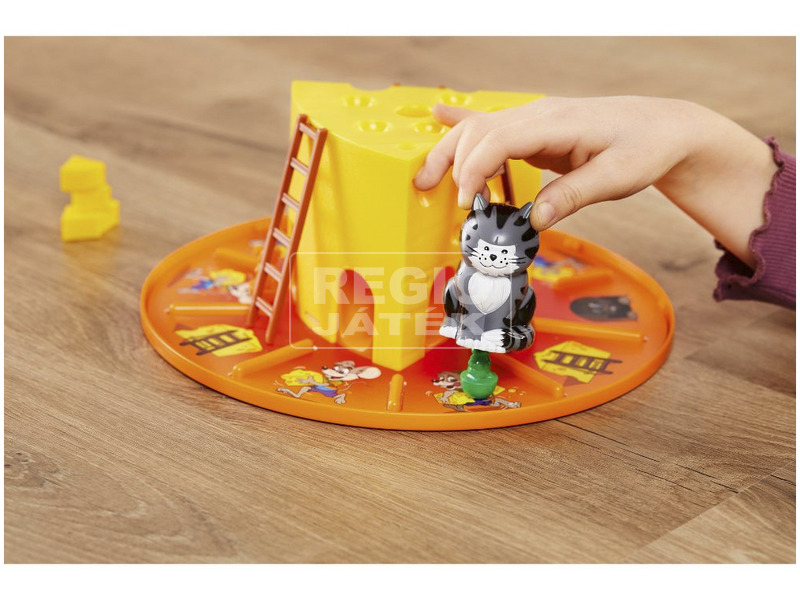 Indulhat egy kalandos és izgalmas macska-egér játék! Ez a társasjáték nemcsak mókás és ér-dekfeszítő, de elképesztően jól is néz ki! A játéktábla maga egy óriási sajt, telis-tele kiszámít-hatatlan lyukakkal és járatokkal. A feladat pedig igazán kalandos és mókás. Egy kis létra se-gítségével az egérkéknek fel kell jutniuk a nagy sajt tetejére, a lyukakban pedig el kell rejteni-ük a lent megszerzett kis sajtdarabokat. Vajon a lyukba bedobott sajt melyik járaton fog ki-jönni és vajon kinek a kosarába esik? Nem elég azonban csak ügyesen lavírozni a létrán, és megfelelő lyukat választani, vigyázni kell, nehogy az utadba tévedjen Max, a macska! Mert akkor aztán lesz nemulass! Legyél te a legügyesebb és legokosabb kisegér, gyűjtsd össze mind az öt sajtdarabot, cselezd ki a macsekot és legyél te a nyertes! Próbáld meg kiokoskodni a járatok irányát és válassz okosan a lyukak közül. Ha a szerencse is melléd áll, tiéd lesz a győzelem! Sajtra fel!