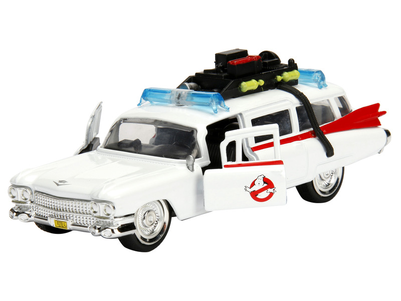 Szellemírtok autó 1:32 Hollywood Rides fém autómodell - Ghostbusters ECTO-1 teljesen élethű mása a mozifilmben szereplő autónak. Ez a kombi 1959-es Cadillac autó segít a Szellemirtóknak elkapni a kísérteteket. Ajtajai nyithatók, a kerekei pedig valódi gumiból készültek. Mérete: kb 12 cm. Méretarány: 1:32. Anyaga: fém és műanyag 8 éves kortól ajánlott.