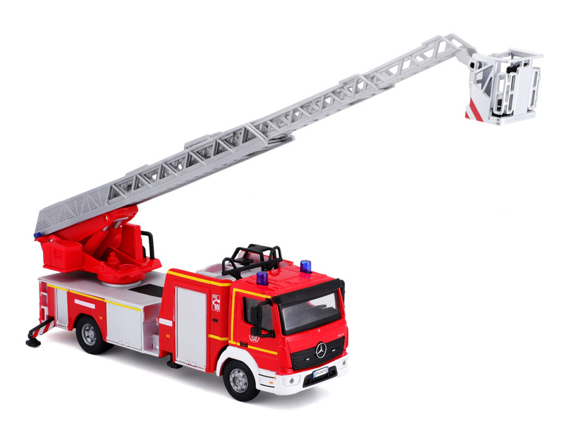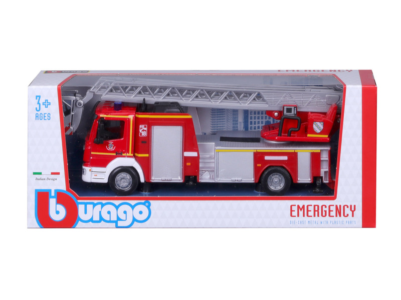 A BBURAGO MERCEDES-BENZ ATEGO MAGIRUS FIREFIGHTER vészhelyzeti fém modellje 1:50 méretarányban. A modellt kiváló minőség és valósághűség jellemzi. A modell fémből és műanyagból készült gumiabroncsokkal, behúzható lábakkal és forgókarral rendelkezik, 360 fokos gémmel, kihúzható létrával. A modell autólakkkal festett. A termék CE európai minőségi és biztonsági tanúsítvánnyal rendelkezik csomag méretei: 22 cm x 9 cm x 6,5 cm modell méretei: 19,5 cm x 5 cm x 7 cm Új modell, eredeti csomagolásban - ajándéknak tökéletes.