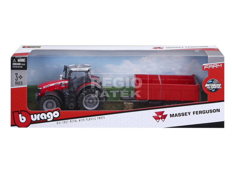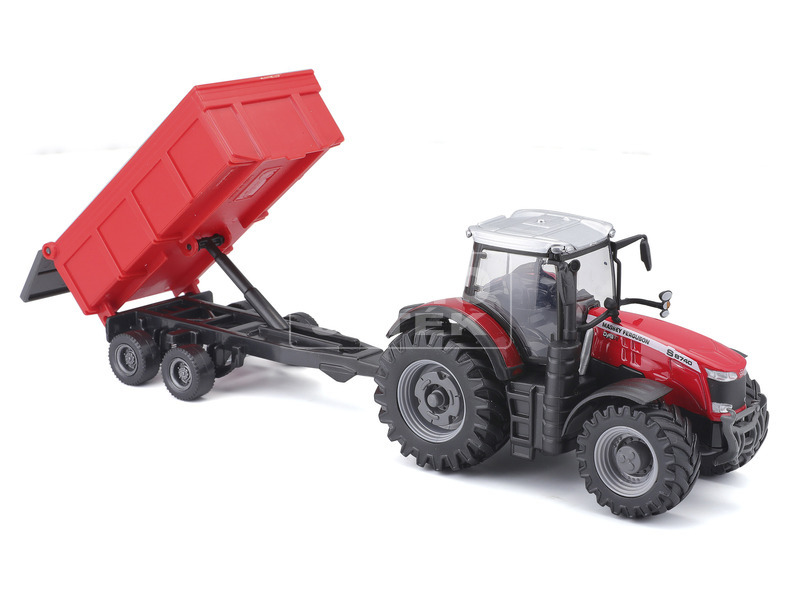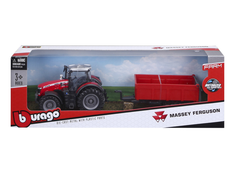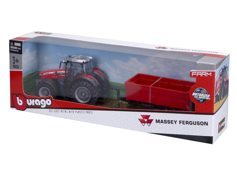 Vegyél részt a mezőgazdasági munkákban a Bburago Massey Fergusson traktorral. Az utánfutó segítségével könnyen betudod gyűjteni a termést, mint egy igazi farmer. Az utánfutó billenthető így a szállítmányt könnyedén tudod letenni a célállomáson.