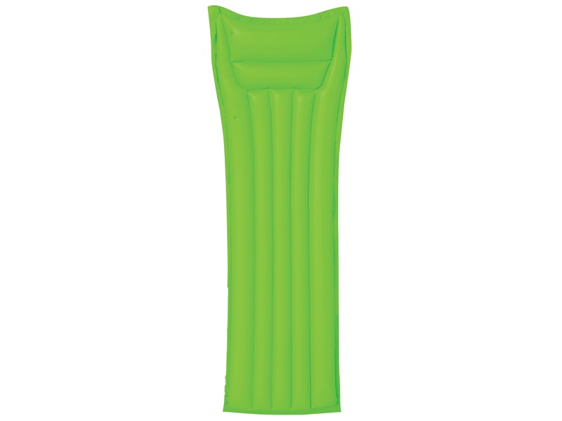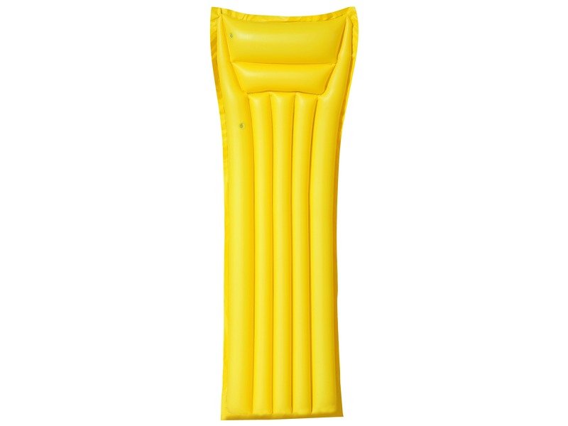 Pihend ki a fáradalmakat a forró napokon a medencében! Az egyszínű strand matrac egy hosszúkás, sárga, rózsaszín, zöld vagy kék színű matrac, ami puha PVC-ből készült. A matrac biztonsági szeleppel fújható fel, a fejtámla rész két légkamrára van osztva. A matrac hűvösebbé teszi a kánikulai napokat, a készlet egy öntapadós javítófoltot is tartalmaz. Felfújt méretek: 183 x 69 cm. A játékok külön kaphatóak.