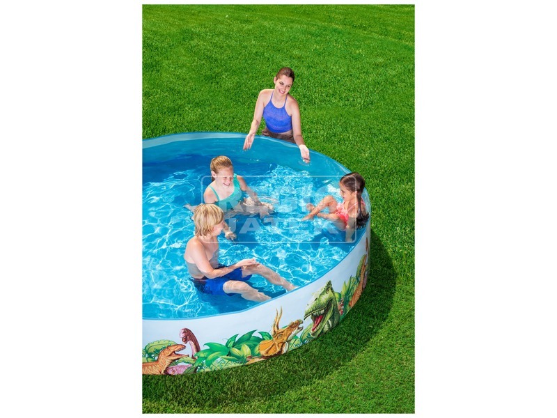 Hűsölj a nagy tengerpart mintás medencében! A tengerpart medence egy széthajtogatható, merev falú medence, amiben akár egyszerre két-három gyerek is kényelmesen tud pancsolni. A medence pálmafákkal van díszítve, a merev falú medencét kerti tömlőről lehet kényelmesen feltölteni vízzel. Méretek: 244 x 46 cm.