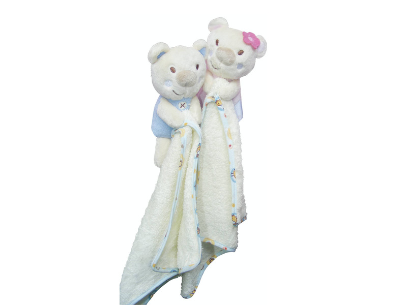 Kék és rózsaszín színben, a termékek külön kaphatóak! Kérjük hogy a megjegyzésbe tüntesse fel, hogy melyik színt kéri. Cukikölykök takarós maci, két színben. Szeretnivaló kismaci pihe-puha takaróval a kezében vajszínű-világoskék, vagy vajszínű-rózsaszín kombinációban kapható. A kismaci 14 cm magas, takarója 26 x 26 cm-es. Puhasága és nedvszívó képessége miatt már az újszülött babáknak is adható, illetve fogzás idején hasznos lehet. A babák szívesen tartják kezükben, morzsolgatják vagy épp szájukba veszik a csücskeit. A játék mosható. Újszülött kortól ajánljuk.