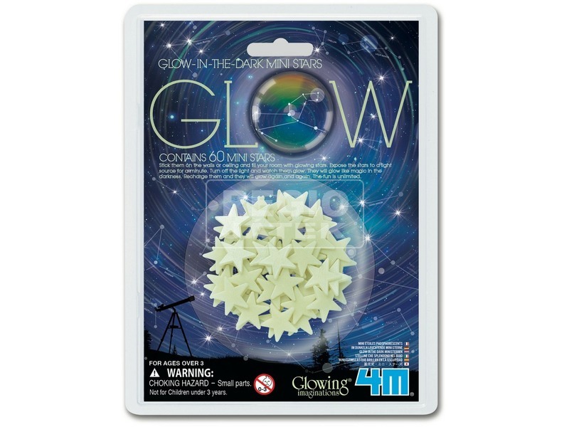 Szeretnél a szobádban is a mini csillagok fényében gyönyörködni? A 4M sötétben világító mini csillag készlet elhozza neked az égboltot! Az apró csillagokat fel tudod ragasztani a szobád falára, plafonra, de még akár a szekrények ajtajára is juthat belőlük. Adj nekik fényforrást pár percre, ha ezután lekapcsolod a villanyt, és sötét van, a kiscsillagok világítani fognak. Fénnyel folyamatosan újra tudod tölteni őket, így korlátlan szórakozáshoz juthatsz a 4M sötétben világító mini csillag készlettel! A 4M sötétben világító mini csillag készlet 60 darab foszforeszkáló égitestet tartalmaz.