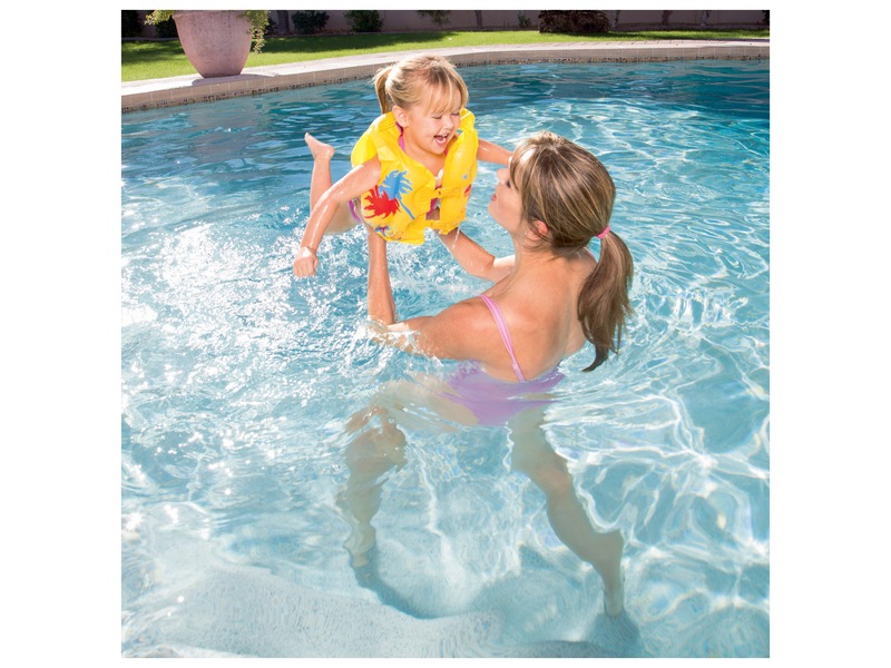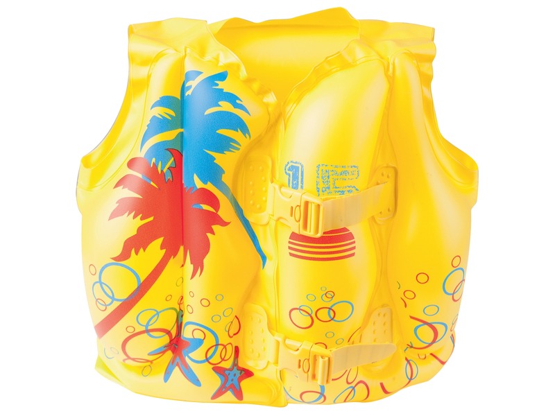 Csónakázáshoz, vízi sportokhoz is használható trópusi mintás úszómellény. A medencében biztonságban tudhatod a gyereket, ha úszómellényt visel. A több kamrás, biztonsági szeleppel felszerelt felfújható mellény fent tartja a víz felszínén a gyereket, miközben szabadon tud mozogni a medencében. A mellényt két csattal lehet rögzíteni. A mellény felfújt méretei: 43 x 30 cm. 3-6 éves korosztálynak.