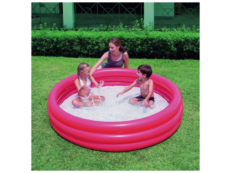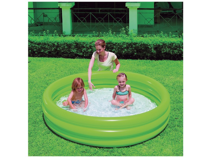 Strapabíró háromgyűrűs medence, többféle színben! A medence nagyon erős műanyagból készült, egyszerre több gyerek is kényelmesen tud benne lubickolni. A felfújható háromgyűrűs medence biztonsági szeleppel van felszerelve, ha kiesik a dugója, akkor sem fog azonnal leereszteni. A medence piros, kék, zöld és sárga színben kapható. Felfújt méretek: 183 x 33 cm. A játékok külön kaphatóak.