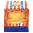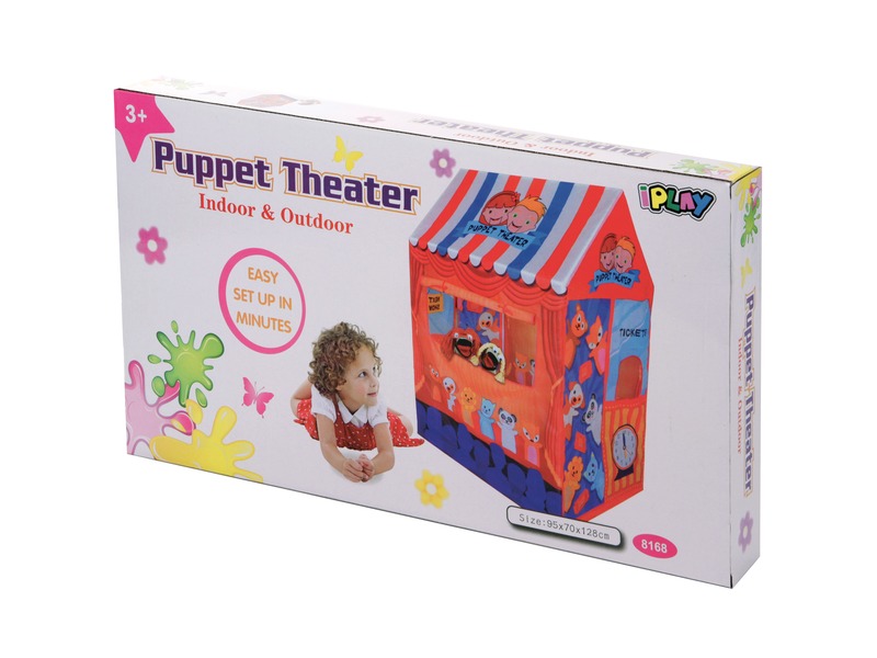 Tarts előadást a bábparaván mögé bújva! A Bábszínház játszóház egy könnyű szerkezetű, PVC-ből készült házikó, amibe bebújva játszhatsz, vagy akár bábszínházi előadásokat is megtarthatsz! A kis ház könnyen összeállítható, kültéren és beltéren is használható, a függönyöket szalaggal tudod rögzíteni, hogy láthassa a közönséged a bábozást! A házikó piros-kék alapszínű, vidám állatos bábok képével van díszítve, a bábszínházban akár ketten is kényelmesen elfértek! A Bábszínház játszóház felállított méretei: 95 x 70 x 126 cm, csomagolás méretei: 55 x 6 x 30 cm.