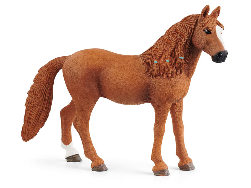 A Schleich® Horse Club termékcsaládhoz tartozó német hátaspóni kancának gyönyörű gesztenyebarna szőre van. A sörényében lévő fonatokat aranyos, apró szalagok tartják össze. Ez különleges látványt nyújt a versenyeken. A német hátaspónik nagyon barátságos állatok, amelyeket kifejezetten azért tenyésztettek ki, hogy gyermekek és fiatalok lovagoljanak rajtuk. Úgy néznek ki, mint a kis lovak, és egyaránt alkalmasak a díjlovaglásra és a díjugratásra. Méret: 11,6x3,5x9,2 cm