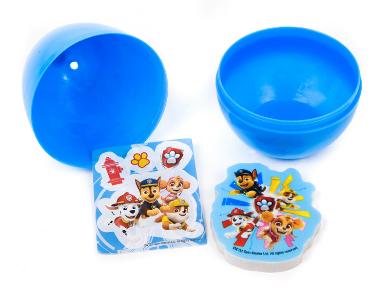A Mancs őrjárat meglepetés tojásban egy műanyagból készült, egy Mancs őrjárat mintás nyomdázó pecsétet fogsz találni. A tojás többféle színű is lehet, és teljesen véletlenszerű, hogy milyen figurát fogsz benne találni.