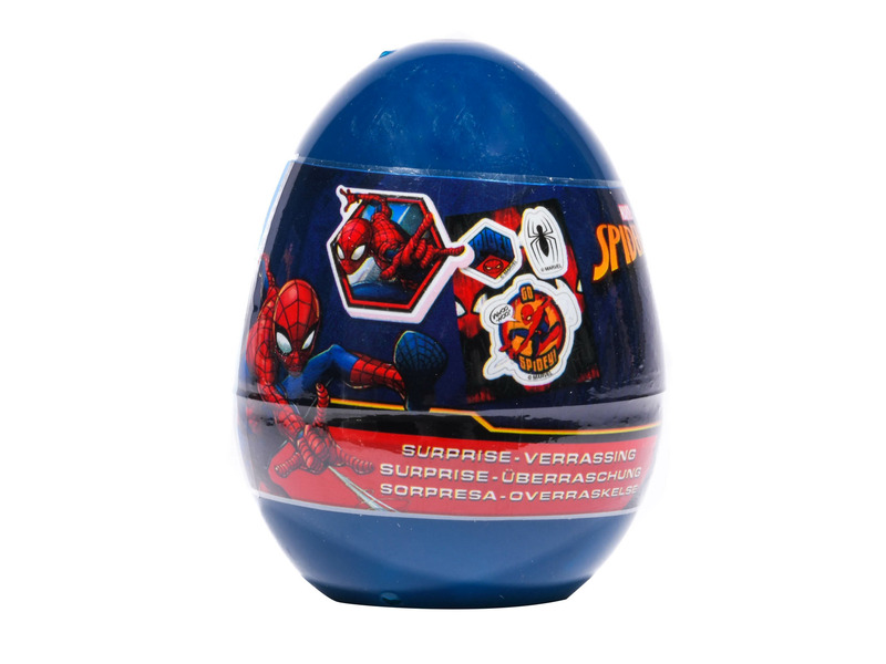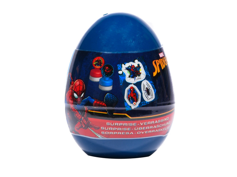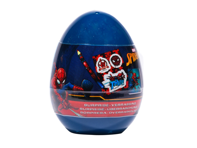 A tojás meglepetést rejt a kedvenc Pókember filmed hősének képével. Gyűjtsd össze a 3 különböző készletet, amelyek lehetnek matricák, filctollak, radírok, ceruzák, bélyegzők és egyebek. Nem tudhatod, milyen Spiderman készletet találsz benne! Méretek: magasság 8 cm x kerülete 18 cm