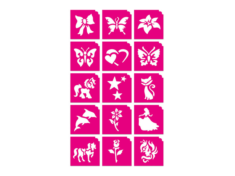 Egy igazán csajos csillámtetoválás szett, amit egyszerűen lehetetlen letenni. A gyermeked imádott lányos sablonjait festheti meg három egyszerű lépésben. Helyezzük a sablont arra a testrészre, ahova szeretnénk a csillámtetoválást, fessük meg, húzzuk le a sablont. És készen is vagyunk. A szórakozás garantált! Akár a kis barátnőkkel játszanánk, akár egy anya-lánya napot tartanánk ez a tökéletes választás.
