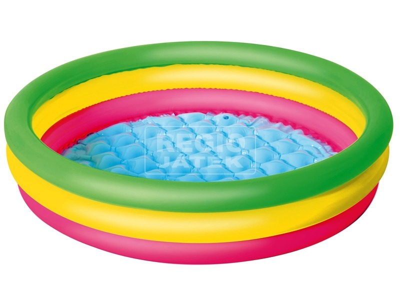 Lubickolj a hűvös vízben, otthonodból ki se mozdulva! A Színes, 3 gyűrűs medencével nem csak a forró nyári napok hűsítő érzéséről gondoskodhatsz, de a fesztiváli játékok öröméről is, hisz a mókás színeinek köszönhetően felerősíti a már meglévő vidám hangulatot. Fújd hát fel a gumimedencét, hívd át barátaidat, dobáljátok bele az összes kedvenc vízi játékotokat, és pancsoljatok késő estig! A Színes 3 gyűrűs medence méretei: 102 x 25 cm.