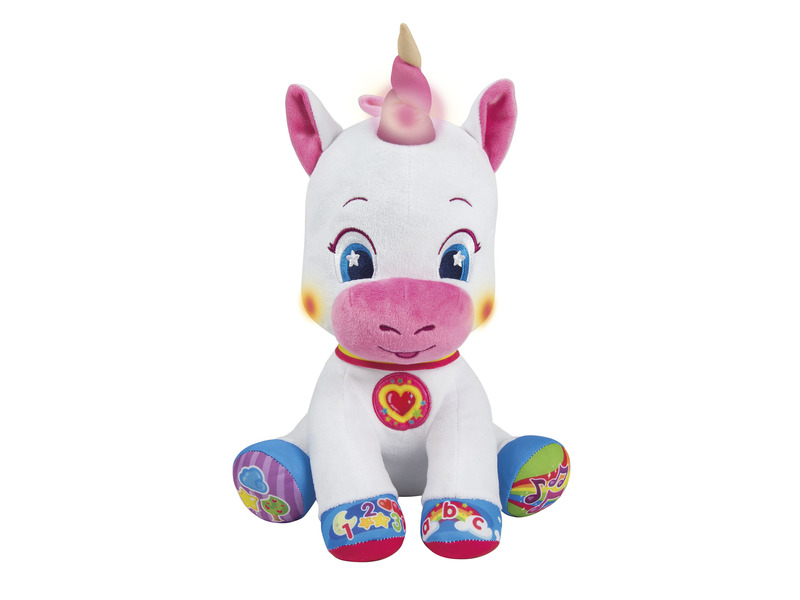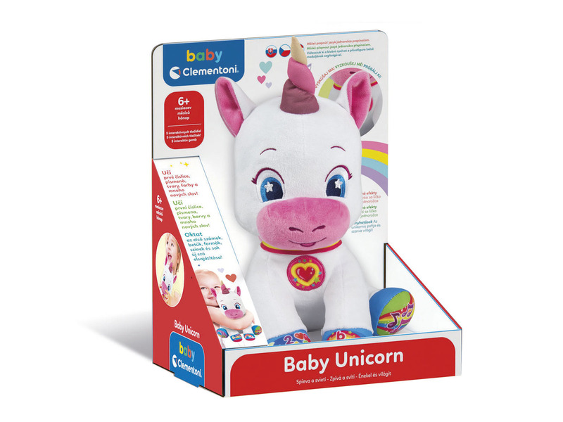 Tedd első iskolás barátoddá a Clementoni - Interaktív Plüss Unikornist! Puha teste, aranyos kinézete, és tanítói tehetsége tökéletes társává teszi az okulni kívánó gyermekeknek. Csak meg kell nyomni a lábán található öt különböző funkciójú interaktív gombok egyikét, hogy rengeteg mókás dal közepette számolni, olvasni, formákat és színeket felismerni tanuljunk meg.