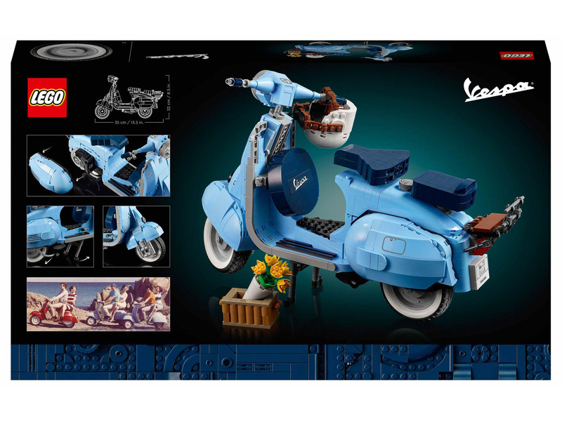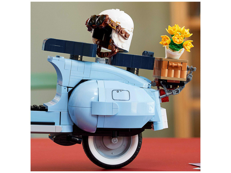 A Vespa 75. évfordulójának alkalmából a LEGO tervezők szorosan együttműködtek a márkával, hogy egy bámulatos modellt alkossanak. Részletes, valósághű funkciók. Az eredetihez hasonlóan ezt a megépíthető Vespa modellt is egy oldalra szerelt, elülső kerékkel, 2 üléssel, levehető motorháztetővel, alatta egy kockákból épült motorral, egy működő kitámasztóval és működő kormányzással alakították ki. Végül, a Vespa logó, egy klasszikus, 1960-as évekbeli olasz rendszámtábla, egy pótkerék, egy bukósisak, valamint kiegészítőkosár tartozik, egy virágcsokorral a hátulján. Fejleszd a kreativitást. Fejleszd a koncentrác